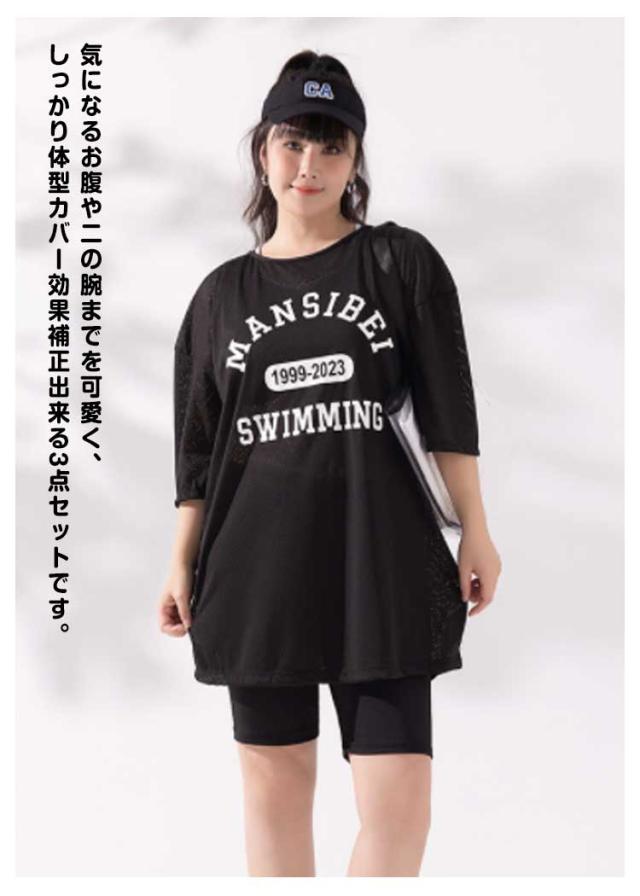 送料無料 タンキニ 送料無料 セット 水着 カップ付き 3点セット 大きいサイズ ショートパンツ セパレート タンキニ水着 メッシュトップス セットアップ 五分袖 女子 中学生 スポーティー 海 ビーチ 3XL 4XL