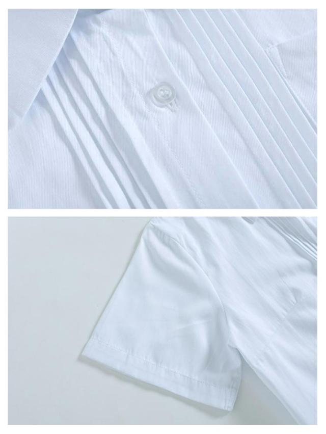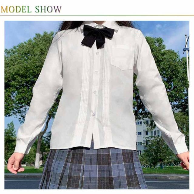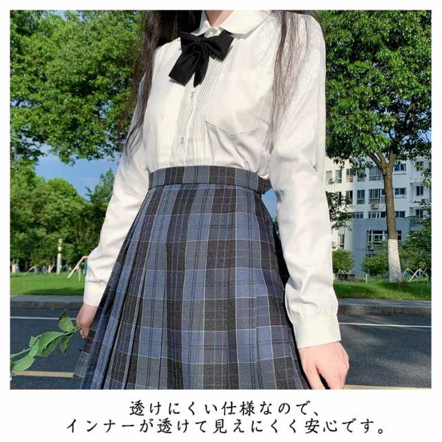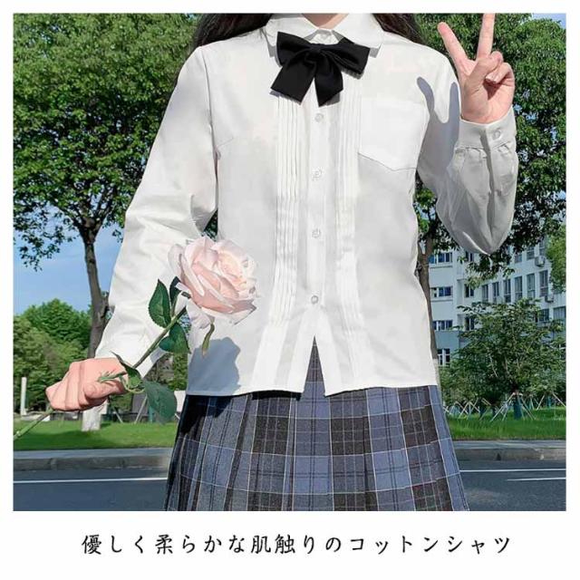 学生服 スクール 女子 ワイシャツ ピンタック レディース シャツ ブラウス 制服 白シャツ 長袖 半袖 シャツ 胸ポケット 綿 コットン 透けにくい 開襟 大きいサイズ おしゃれ 中学生