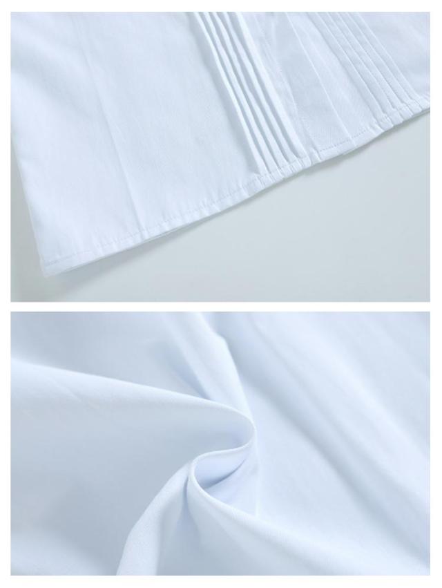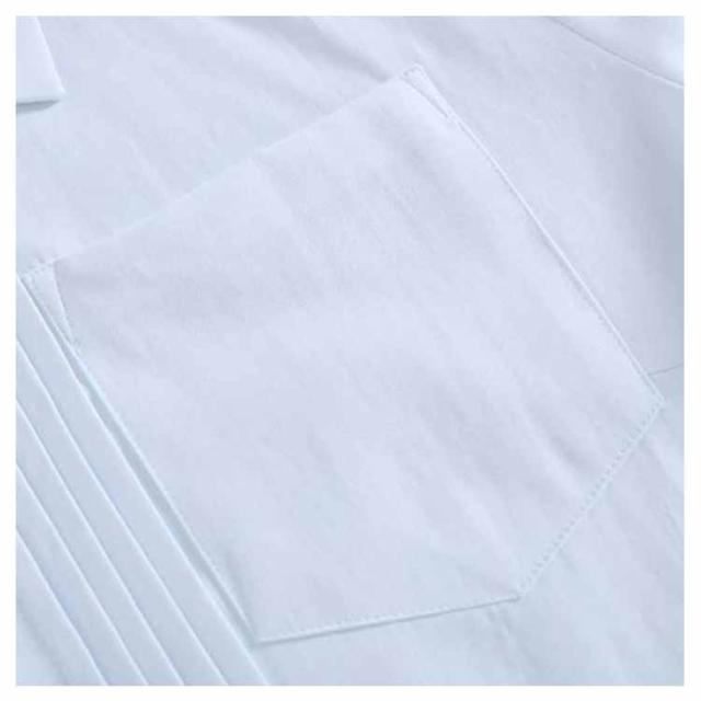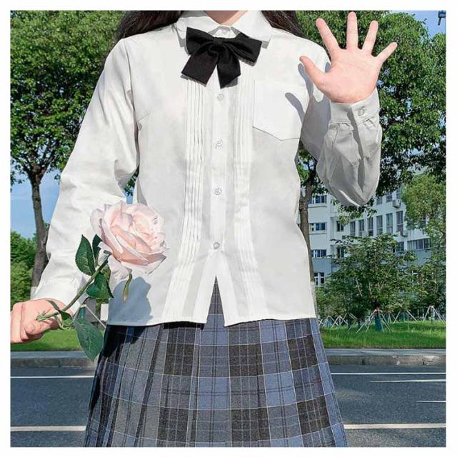 | ・胸ポケットが付いたスクールシャツ ・優しく柔らかな肌触りのコットンシャツ ・胸元の繊細なタックもさり気ないアクセントになっています。 ・透けにくい仕様なので、インナーが透けて見えにくく安心です。 ・春夏はお好みのリボンやネクタイを付けてアレンジもカワイイ♪ | |