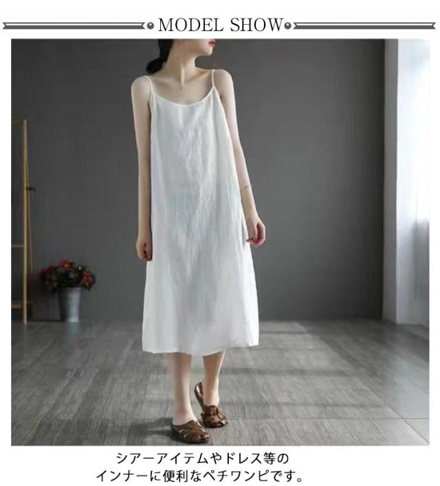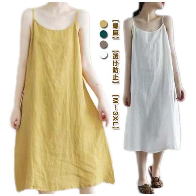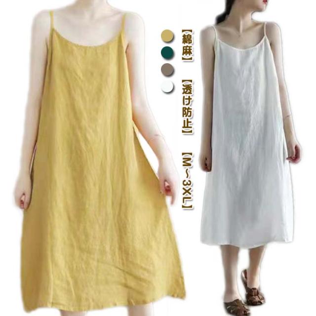 レディース スリップ レイヤード キャミソールワンピース 綿麻 ペチコート インナー 夏 ペチワンピ 重ね着 ワンピース ルームウェア 下着 ロング 透け防止 ナチュラル 浴衣 ワンピース ゆったり 大きいサイズ 部屋着 ナイトウエア インナー