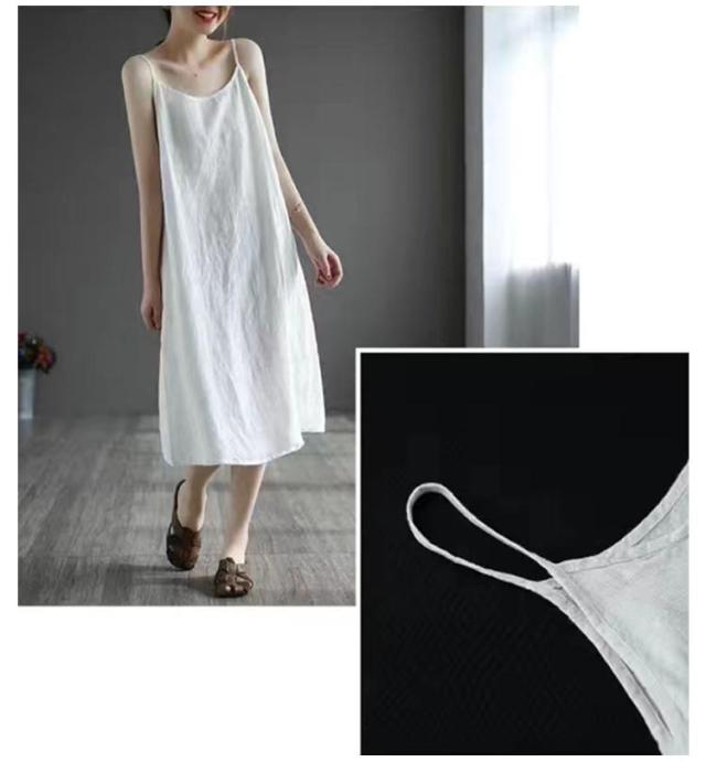 | 【綿麻】 【透け防止】 【M〜3XL】 シアーアイテムやドレス等のインナーに便利なペチワンピです。 ゆったりシルエットで気になる体型カバーにも◎ 通気性と吸湿性に優れた綿麻素材で着心地抜群! シンプルなデザインなので洋服にも響きません。 | |