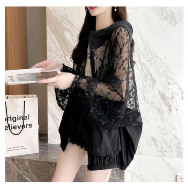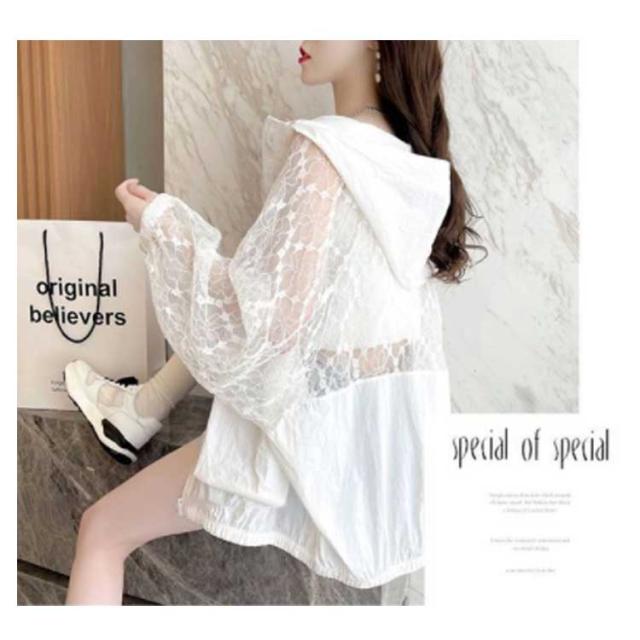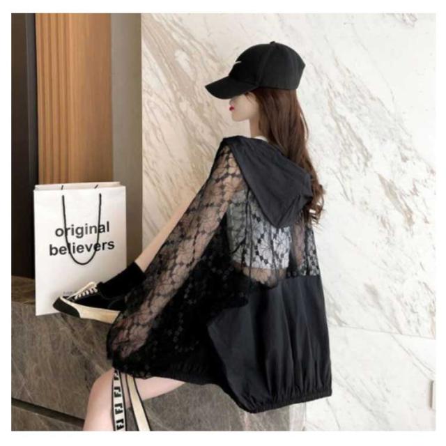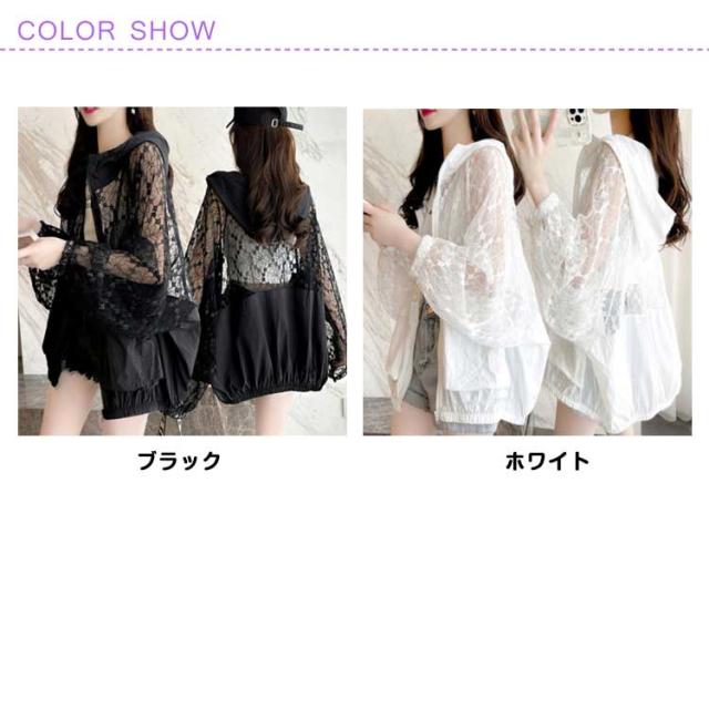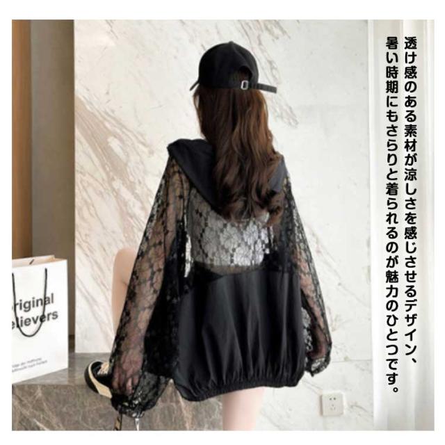 ジップアップパーカー レースパーカー 薄手 レディース 夏 フードパーカー 透かし編み トップス 夏パーカー フェミニン かわいい シースルー M 羽織り 冷房対策 透かし編み L XL 2XL