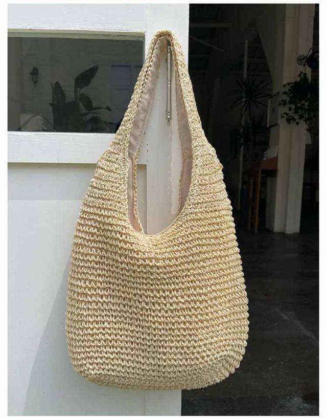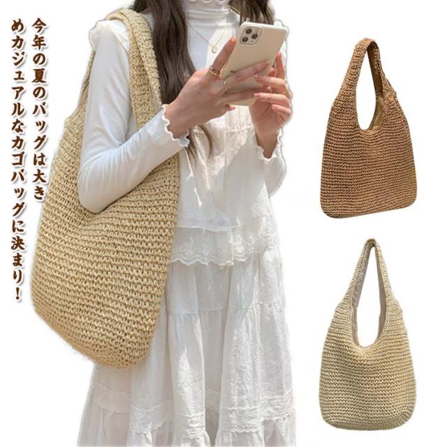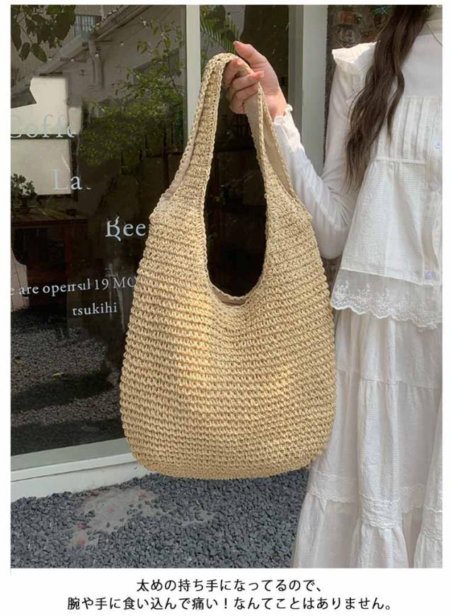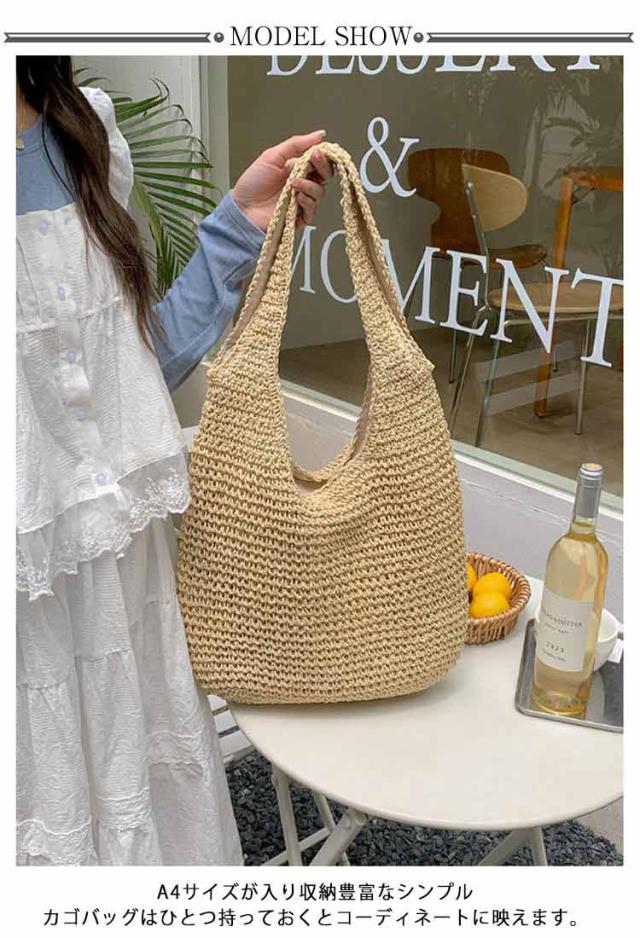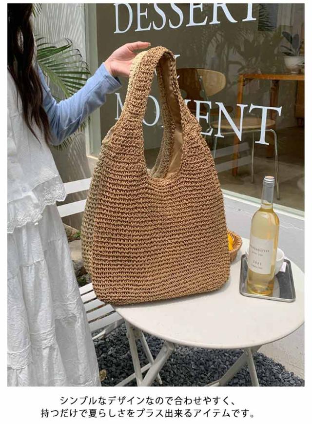 ファスナー かごバッグ A4 トートバッグ 肩掛けバック カゴバッグ 旅行 かごバッグ トート 可愛い 夏バッグ 夏 手提げ 編みバッグ ストローバッグ 大容量 かばん 通勤 浴衣 カバン