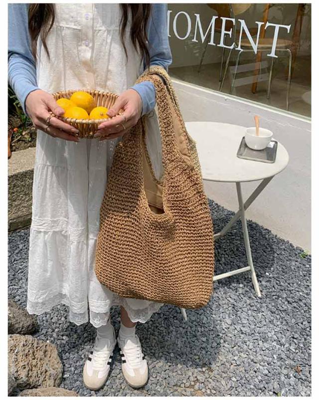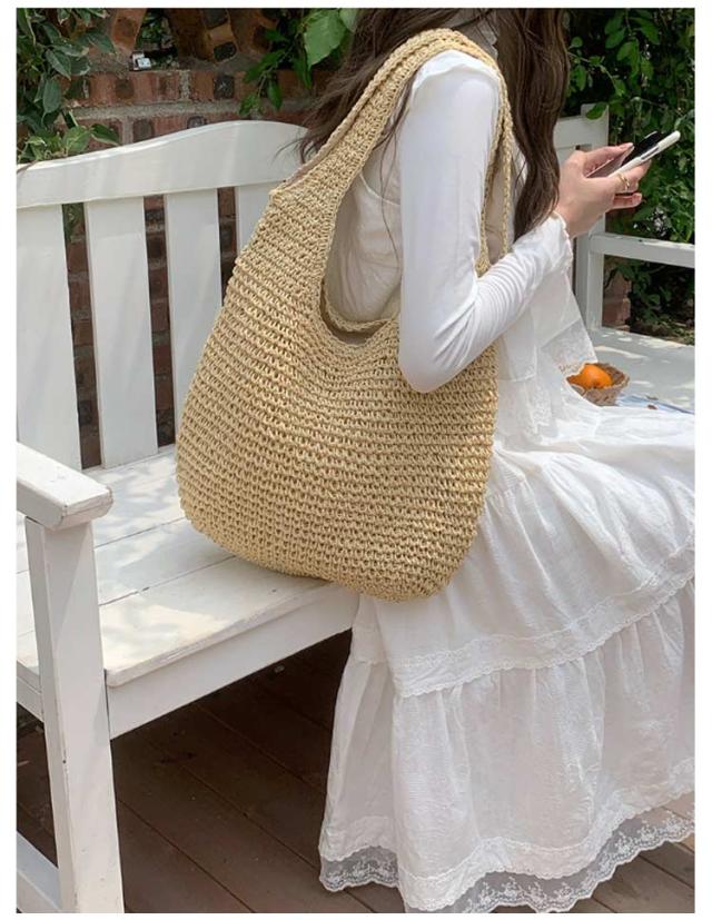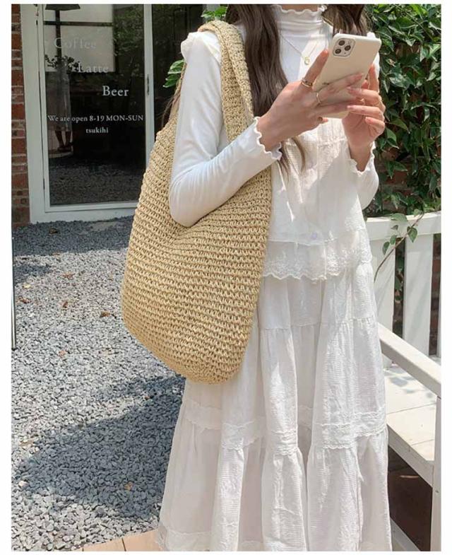 | 今年の夏のバッグは大きめカジュアルなカゴバッグに決まり! A4サイズが入り収納豊富なシンプルカゴバッグはひとつ持っておくとコーディネートに映えます。 またマチをしっかり設けることで、ペットボトルやポーチ類も余裕で収納可能。 大きさ以上に使い勝手の良いアイテムです。 開口部はトート仕様で、ファスナーがついてるから中身も見えないから安心。 太めの持ち手になってるので、腕や手に食い込んで痛い!なんてことはありません。 シンプルなデザインなので合わせやすく、持つだけで夏らしさをプラス出来るアイテムです。 ドライなタッチで天然素材のような風合いは夏らしさ満点です。 通勤や通学、カジュアルやきれいめコーデにもばっちり似合います! | |