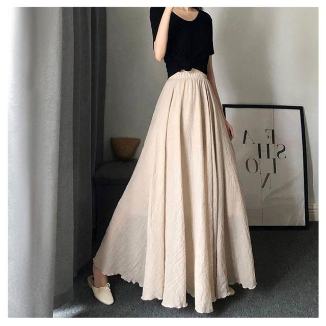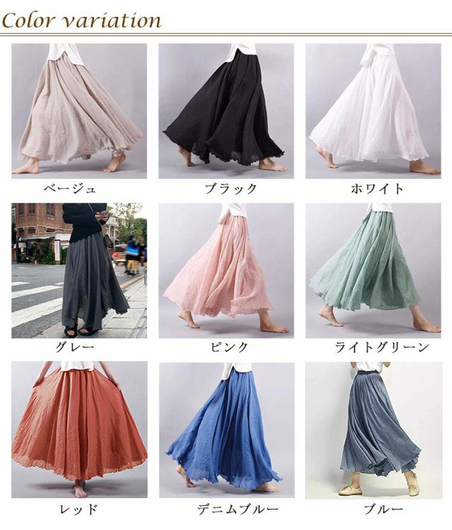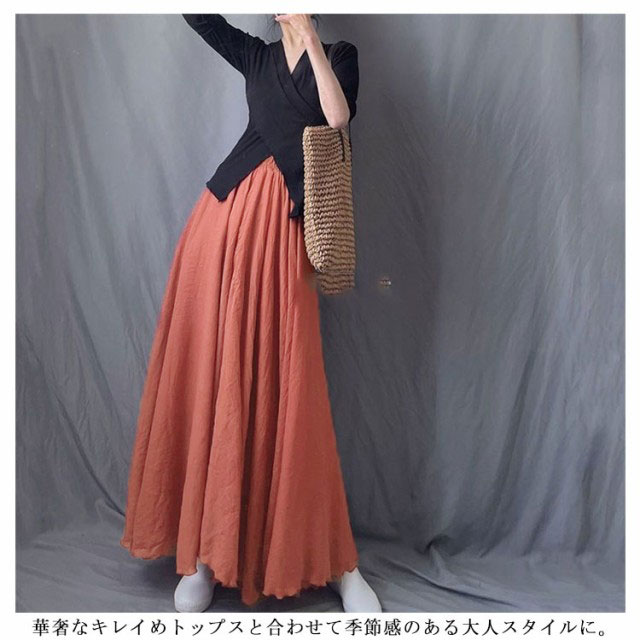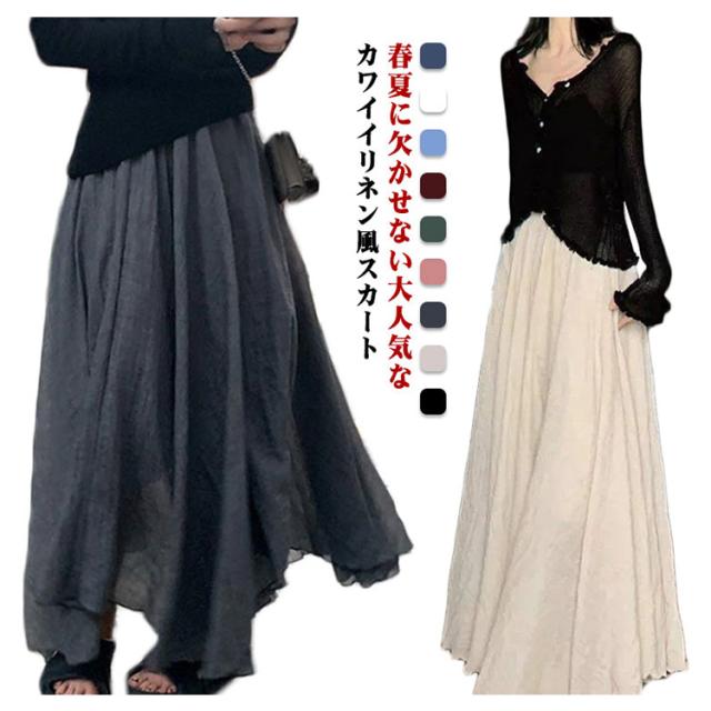 フレア レデイース スカート リネンスカート リネン風スカート スカート 綿麻混 リネン風 ロングスカート 体型カバー マキシ ふわり 亜麻 マキシスカート フレア ふんわり リゾート 薄手 涼しい 綿麻風 春夏 春夏 フレアスカート