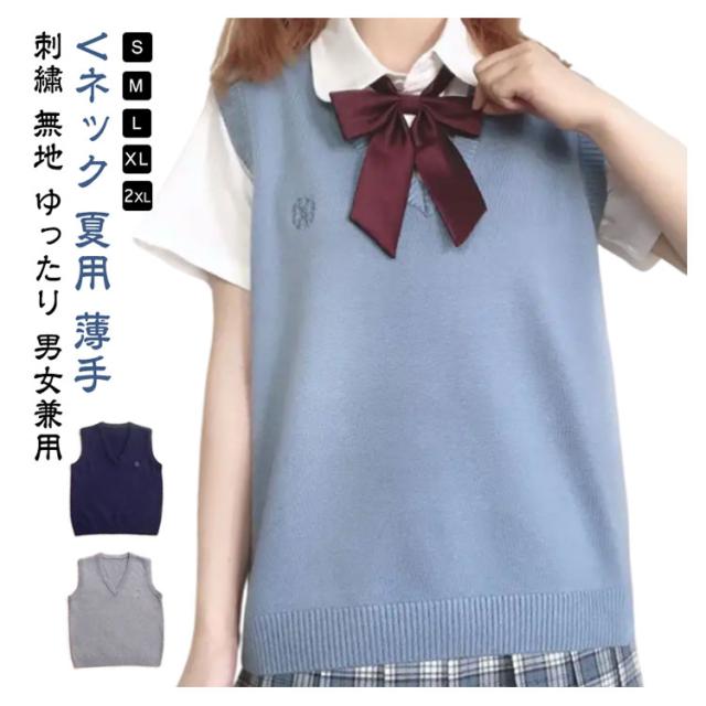 学生服 制服 スクールセーター Vネック 夏用 ベスト ニットベスト スクールベスト レディース スクール 制服ベスト ロゴ 定番 ノースリーブ 薄手 刺? 高校生 中学生 スクールベスト 女子高生 通学 無地 ゆったり 男女兼用 通年