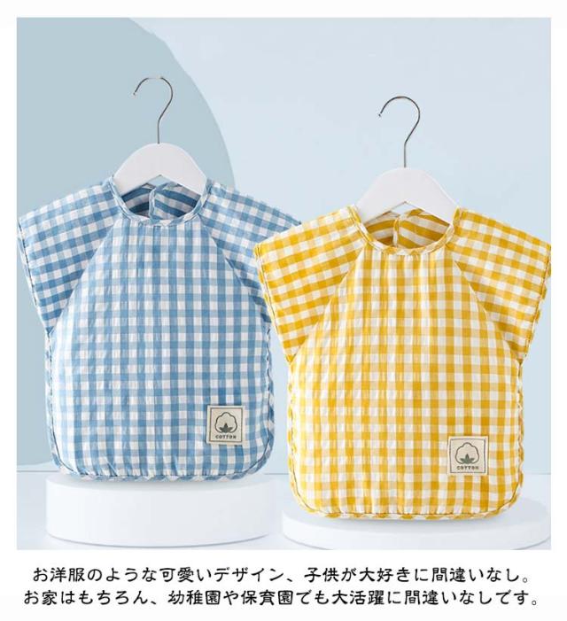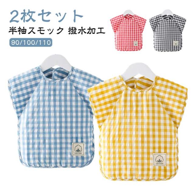 綿 エプロン スモック 離乳食 100 ロング 防水 食事エプロン 入園準備 ベビー 半袖 お食事 2枚セット!お食事エプロン お食事用エプロン 幼稚園 赤ちゃん キッズ 女の子 男の子 チェック柄 子供 幼児 90 保育園