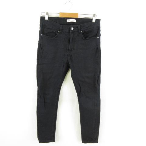 【中古】ザラ ZARA スキニーデニムパンツ ロング ストレッチ 黒 38 *A758 レディース