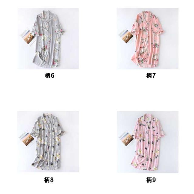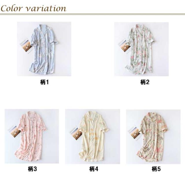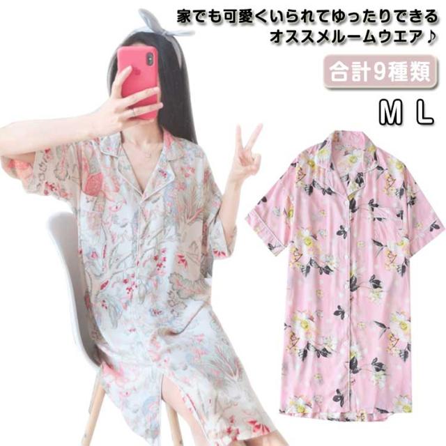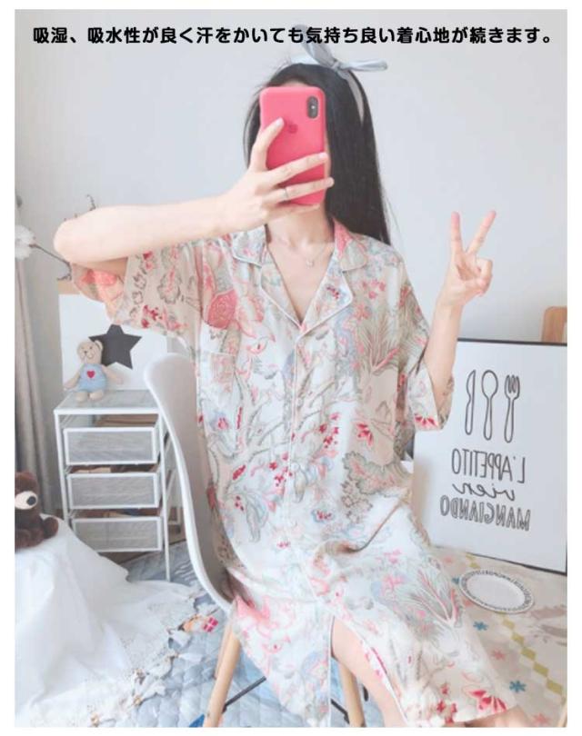 ネグリジェ パジャマ レディース ルームウエア 寝巻き 春夏 半袖ワンピース パジャマ ロング丈 襟付き 花柄 部屋着 大人可愛い 涼しい 送料無料