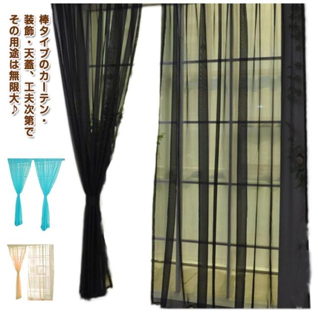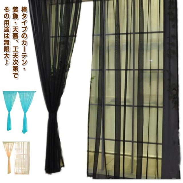 | 棒タイプのカーテン・装飾・天蓋、工夫次第でその用途は無限大♪ ふわふわ軽くカラフルなレースカーテン。子供部屋や模様替えにシンプルなのでとっても使いやすい! ポリエステル100%・洗濯機で丸洗いOK! 17色ご用意しておりますので、様々な組み合わせをお楽しみ下さい。 ご注意:カーテンレール仕様ではございません。ポールに通す仕様です。カーテンレールは、付属しておりません。 | |