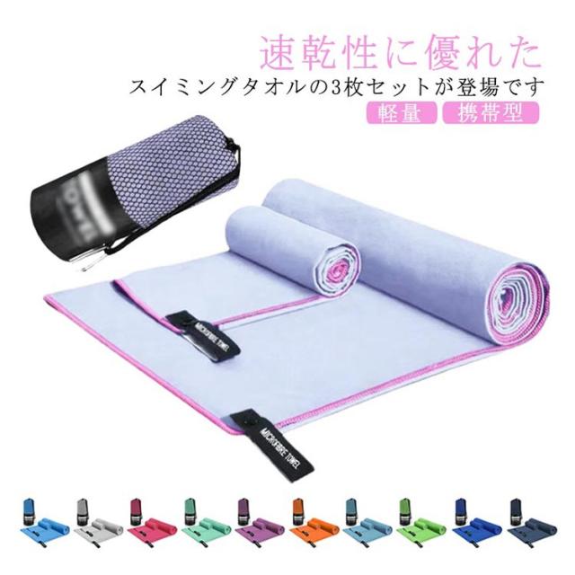 速乾タオル スイミングタオル 速乾 バスタオル フェイスタオル 3枚セット フックなし スポーツタオル ドライタオル 携帯型 収納ケース付き 水泳タオル 柔らかい 吸汗 軽量 吸水速乾 吸水タオル 軽い 旅行 家庭用 洗車 水泳 スポーツ ジム ヨガ 髪 早く乾く おしゃれ 送料無料