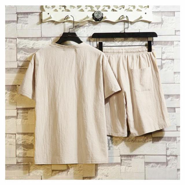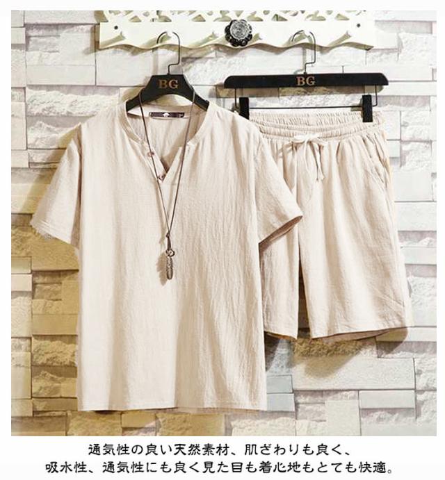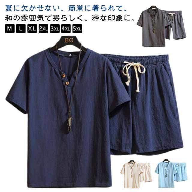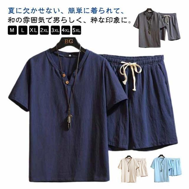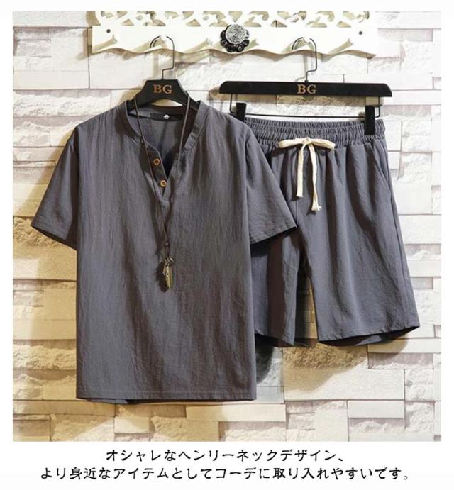 甚平 綿麻上下セット 涼しい セットアップ メンズ ワイドパンツ 綿麻 寝巻き パジャマ じんべい ゆかた 部屋着 大きいサイズ 短パン 甚平 セット 和服 シャツ ヘンリーネック 涼しい 夏服 彼氏 父 誕生日 敬老の日 浴衣 20代 30代 40代 送料無料