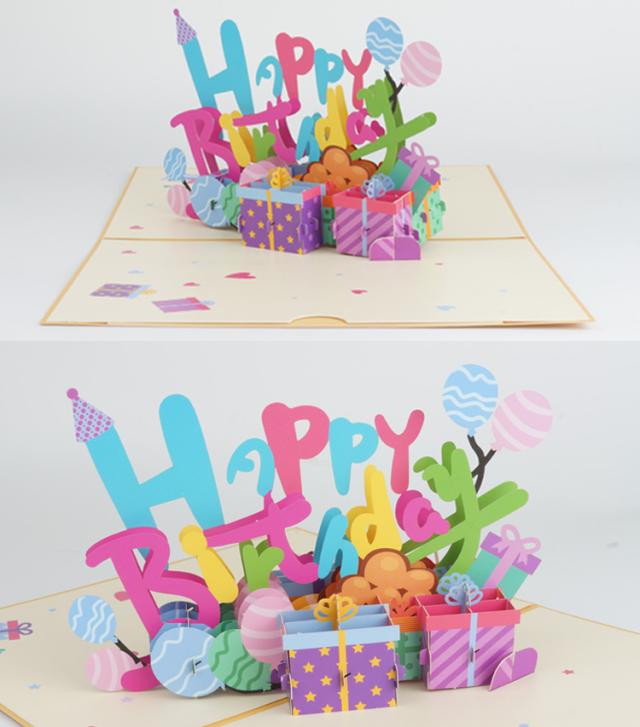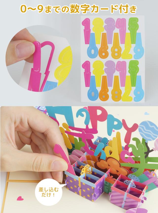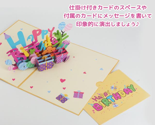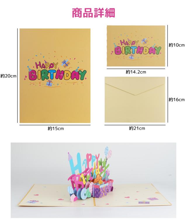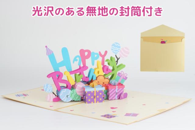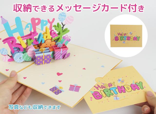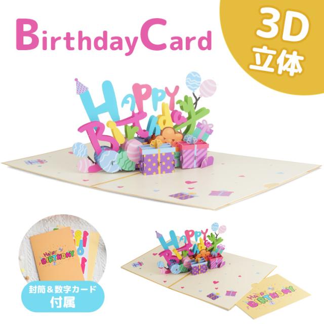 バースデーカード メッセージ 誕生日 カード 3D 立体 カード メッセージカード 風船 プレゼント グリーティングカード メッセージ 誕生日カード レターセット カード 封筒付き PR-BDAY3D【メール便 送料無料】