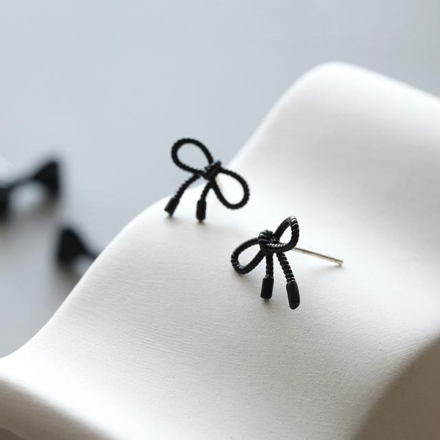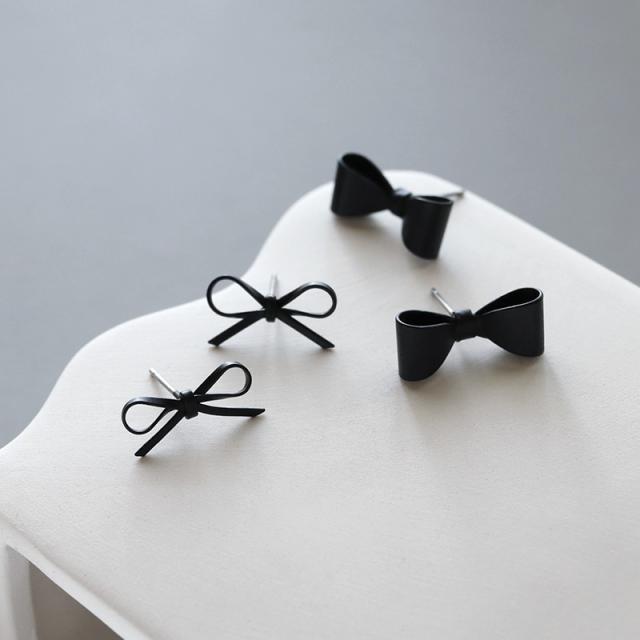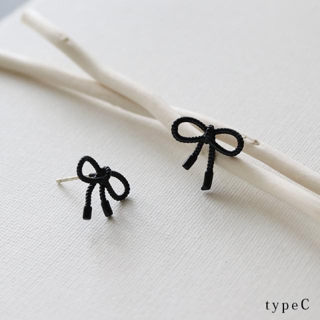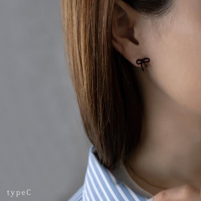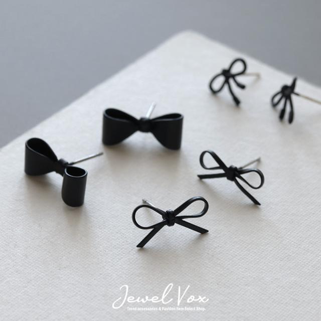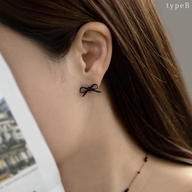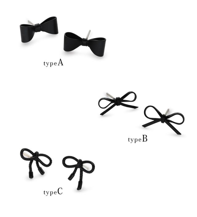 ピアス レディース 金属アレルギー ニッケルフリー チタンポスト ブラックコーティング りぼん リボン ミニ 小さめ 3タイプ 可愛い デイリー カジュアル オケージョン 結婚式 プレゼント 女性