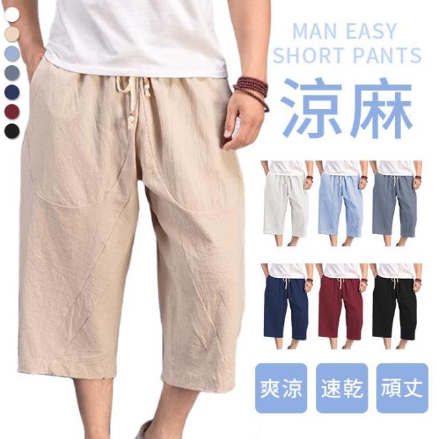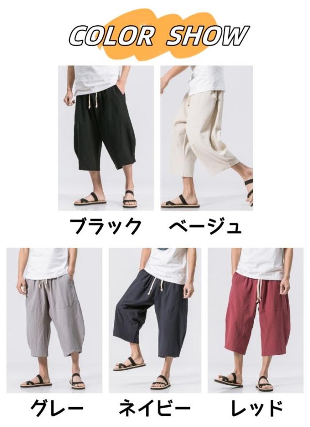 パンツ メンズ ショートパンツ 麻 大きい 夏 リネンパンツ ルームウェア 7分丈 七分丈 綿麻 部屋着