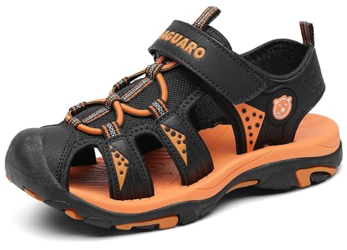 Putu キッズ サンダル ビーチサンダル つま先保護 マジックテープ アウトドア スポーツ 透気 柔らかい 滑り止め 春夏秋 男の子 女の子