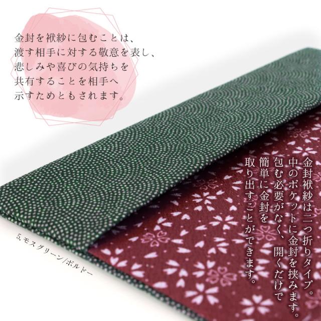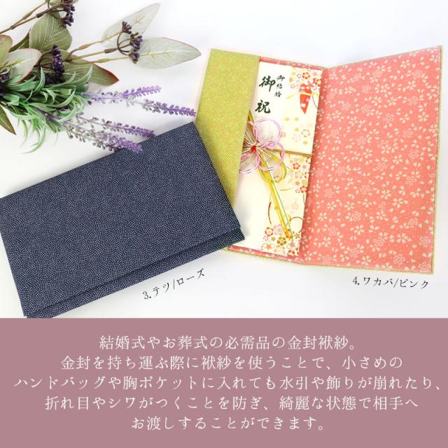 また、金封を袱紗に包むことは、渡す相手に対する敬意を表し、悲しみや喜びの気持ちを共有することを相手へ示すためともされます。