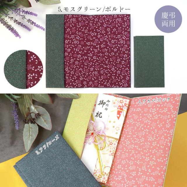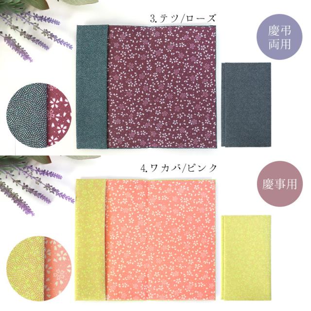 落ち着きのあるムラサキ/グリーンとモスグリーン/ボルドー、上品なテツ/ローズは慶弔両用、どちらのシーンでも使うことができます。