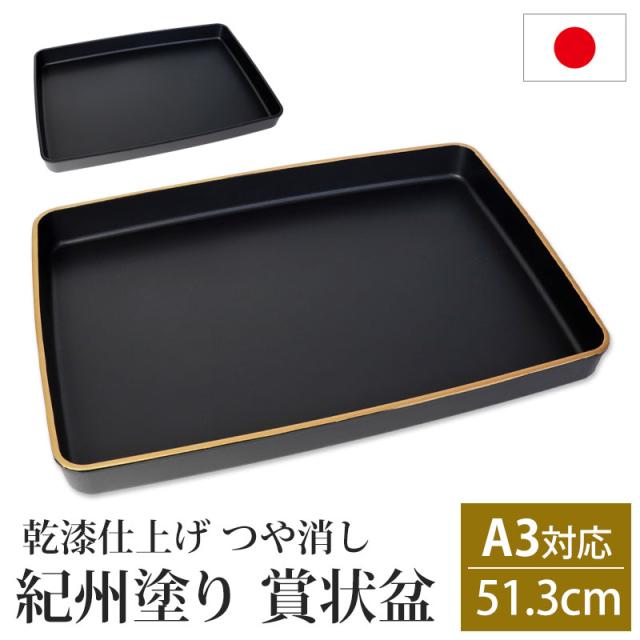 賞状盆 紀州塗り A3サイズ 51.3cm PC 17寸 乾漆仕上げ つや消し 日本製 国産 お盆 トレー マット 金縁 賞状 表彰状 表彰盆 表彰式 卒業式 卒園式 学校 入学式 式典用品 催事 祭事 行事 記念式典 イベント セレモニー