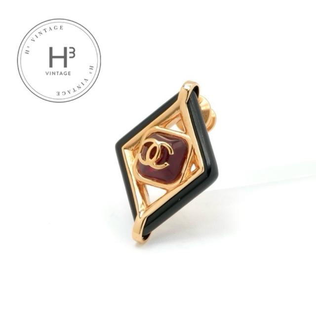 シャネル CHANEL ブローチ コサージュ ゴールド レッド ブラック ピンブローチ ダイヤ型 ココマーク