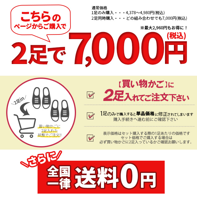 ※表示されている価格は2足セットで購入頂いた場合の1足あたりのお値段です。(1足あたり3,500円。2足セットで7,000円)