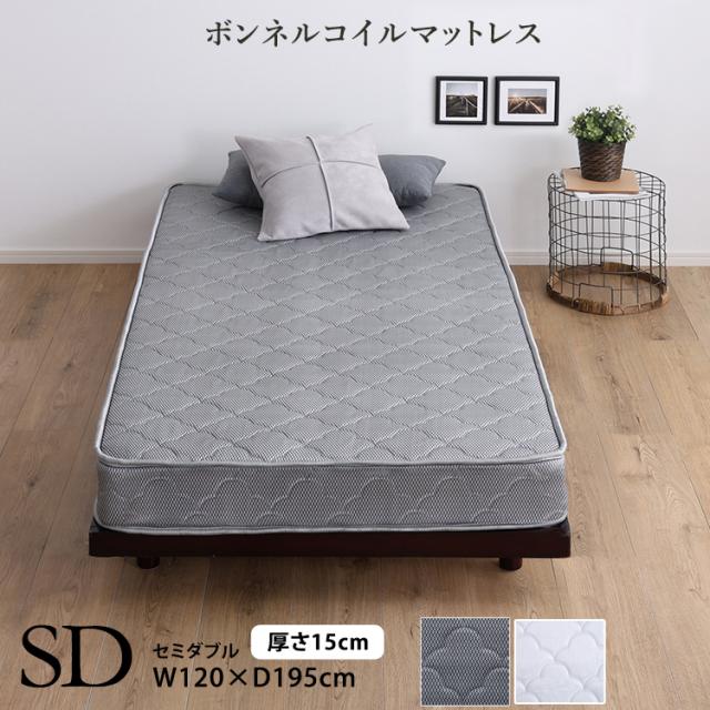 ボンネルコイルマットレス (セミダブル) シルバー ホワイト 2色 厚さ15cm 硬めの弾力性 高反発 ウレタン コンパクトな圧縮ロール梱包配送でラクラク受取