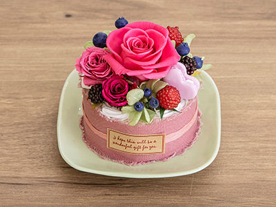 可愛い!と喜ぶ笑顔が見られそうな、まるでケーキのようなアレンジメントです。