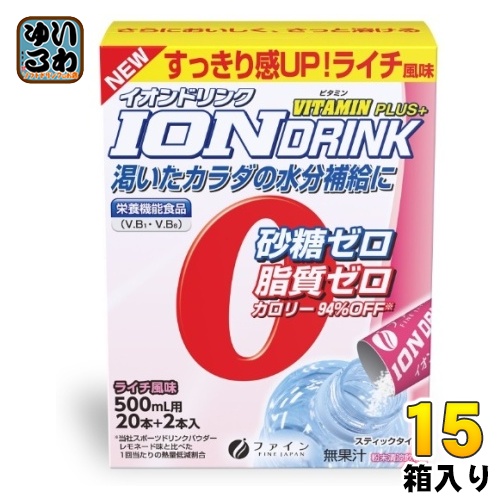 送料無料 スポーツドリンク スポドリ ハイポトニック飲料 スティックタイプ 熱中症対策 粉末タイプ パウダータイプ ION DRINK 飲料 砂糖0 脂質0 500ml用 20本+2本入 スポーツドリンクパウダー FINE JAPAN 渇いたカラダの水分補給に すっきり感UP! ライチ味 栄養機能食品 VITAMIN PLUS+ ビタミン+ 水分補給 塩分補給 4976652007550