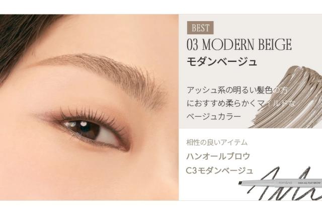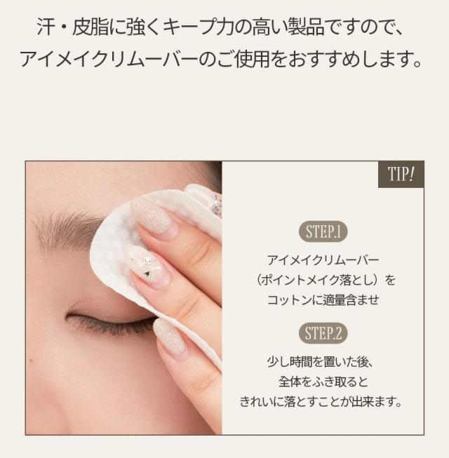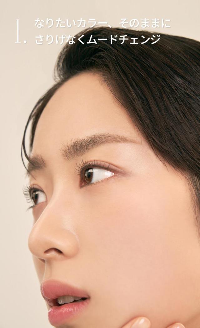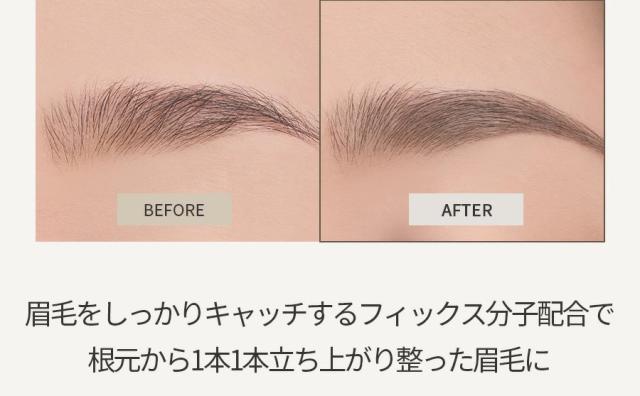 眉頭から、眉毛の流れに沿って根本から毛先方向にとかすようにして塗布します。