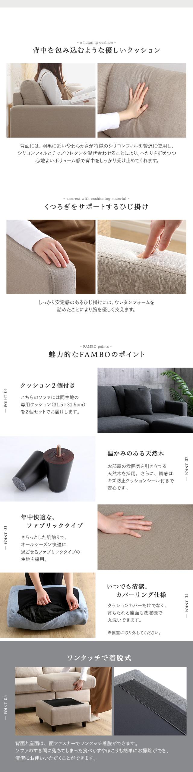 背もたれとクッションはカバーリングなので、汚れてもで直ぐに丸洗いできていつでも清潔。