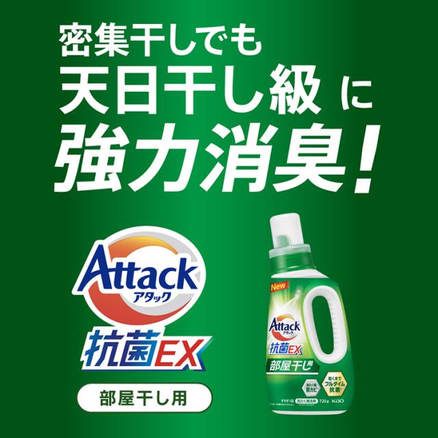 ○レギュラー:「アタック抗菌EX」、部屋干し:「アタック抗菌EX 部屋干し用」のボトルにつめかえる。