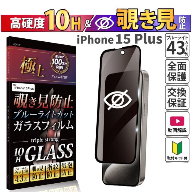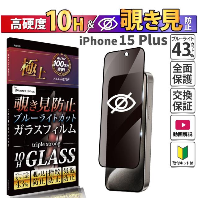 iPhone 15 Plus ガラスフィルム 全面保護 覗き見防止 ブルーライトカット かんたん 安心 日本製 スマホフィルム 強化ガラス のぞき見 保証 アイフォン アイホン ポイント消化 除き見 おまけ付き 防水ケース