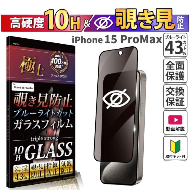 iPhone 15 ProMax ガラスフィルム 全面保護 覗き見防止 ブルーライトカット かんたん 安心 日本製 スマホフィルム 強化ガラス のぞき見 保証 アイフォン アイホン ポイント消化 除き見 おまけ付き 防水ケース