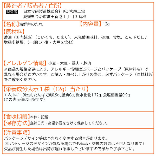 日本食研 海鮮丼のたれ 12g (100個) 刺身 海鮮 ソース すっきり 使い切り 小袋 業務用