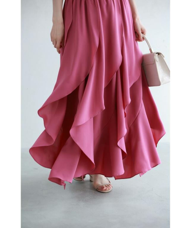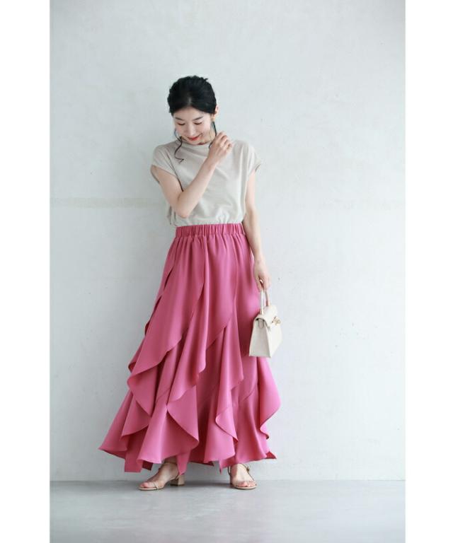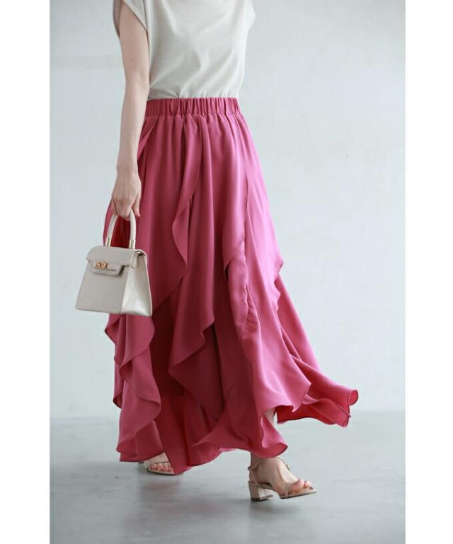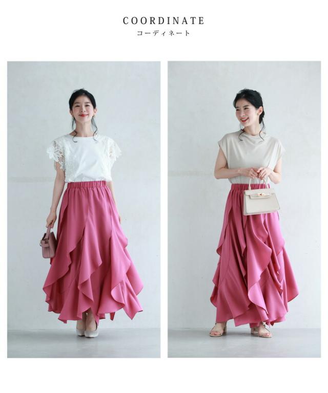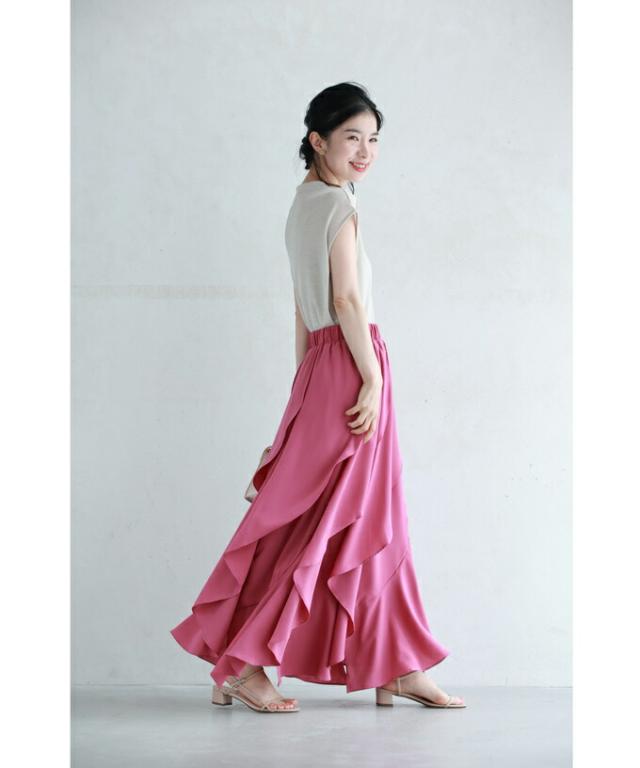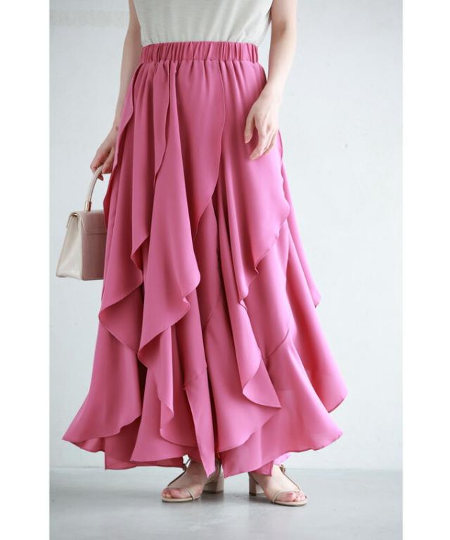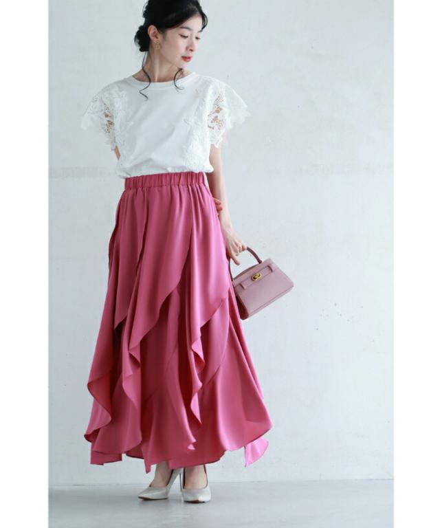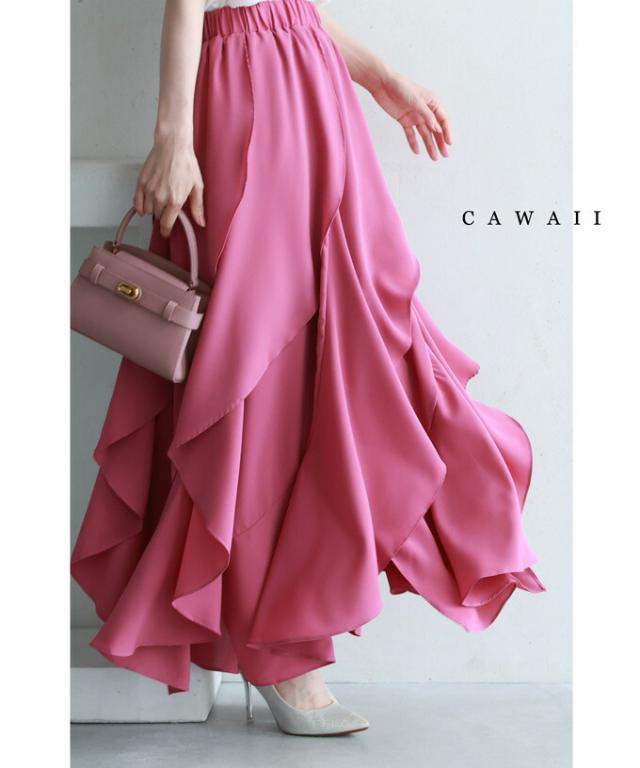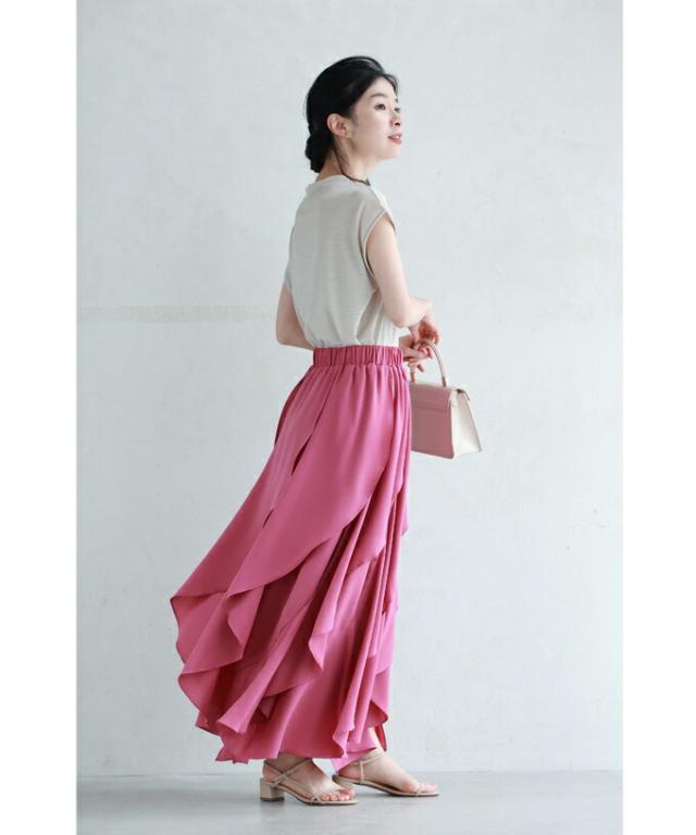 w60795ps 新作 新着 再入荷 CAWAII FRENCHPAVE フレンチパヴェ エレガント ベーシック カジュアル 可愛い かわいい カワイイ おしゃれ オシャレ お洒落 個性 個性的 定番 ベーシック 大人かわいい 大人可愛い 上品 女性らしい デザイン スタンダード ナチュラル きれいめ キレイめ シンプル フェミニン レディース レディースファッション 大人 ママ ミセス 30代 40代 50代 60代 ひらひら 花びら フリル スカート 軽やか ふんわり エアリー ウエストゴム ゴム 総ゴム S M L 2L LL XL フリーサイズ フリー 小さめ 小さめサイズ小さい 小さいサイズ 低身長 痩せ ほっそり 小柄 細身 標準サイズ 大きめシルエット 大きい 大きめ ビッグシルエット ぽっちゃり F サイズ自由 薄手 涼しい ずずしい 春 夏 春服 春物 夏 夏服 夏物 無地 ワンカラー ワントーン ピンク 日常着 普段着 日常使い おでかけ 旅行 休日 女子会