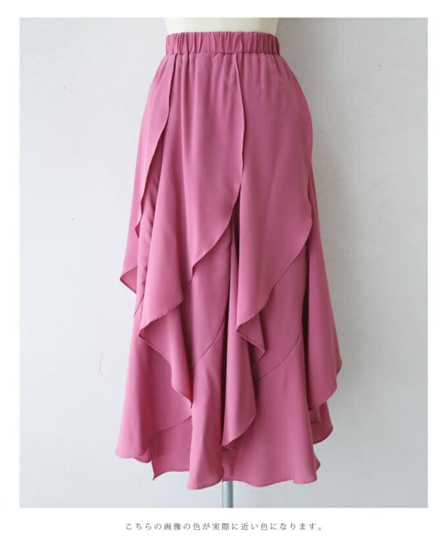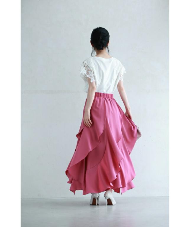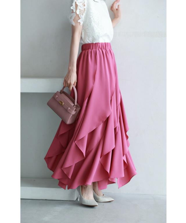 再入荷9月9日 ひらひら花びらフリルスカート cawaii w60795ps S~2L対応 ふんわり エアリー ウエストゴム ピンク オシャレ 個性的 大人可愛い エレガント 上品 春服 春物 夏服 夏物 薄手 レディース ファッション ミセス 30代 40代 50代