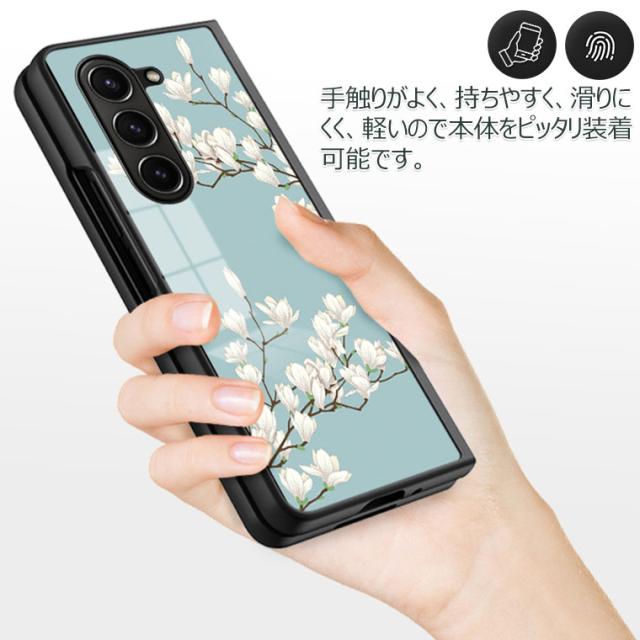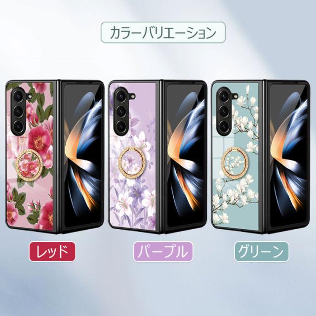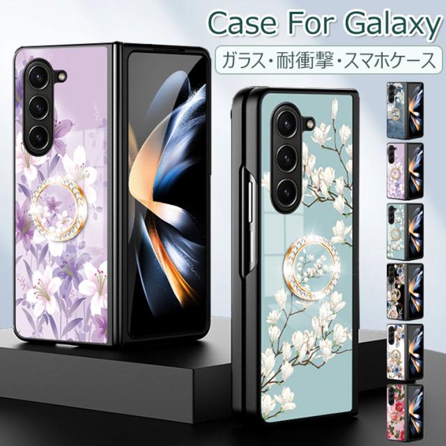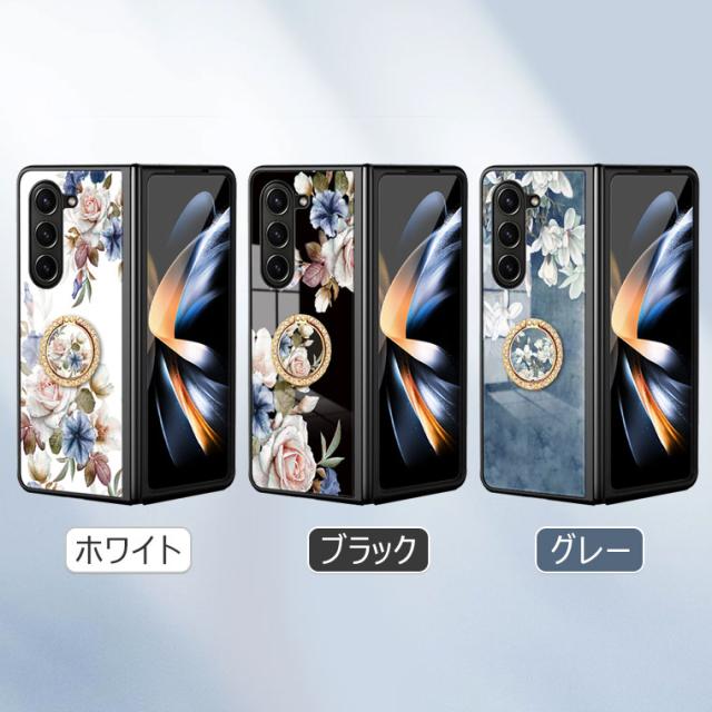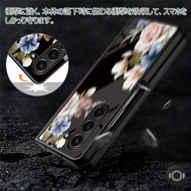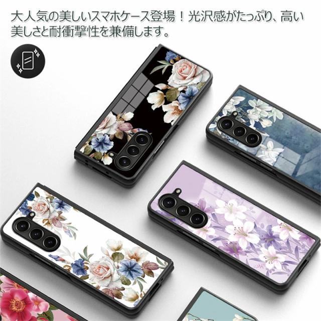 Galaxy Z Fold6 5G ケース 花柄 背面ガラス型 Galaxy Z Fold 5 カバー ガラスケース 耐衝撃 可愛い シンプル ギャラクシー Z フォールド 4 5 スマホケース 9H強化ガラス おしゃれ かわいい オシャレ 可愛い PCハード Galaxy Z Fold 7 カバー 薄型 マルチ 光沢デザイン