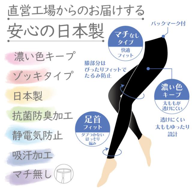 - 抗菌防臭加工により、気になるニオイを抑え、脚を爽やかに保ちます。