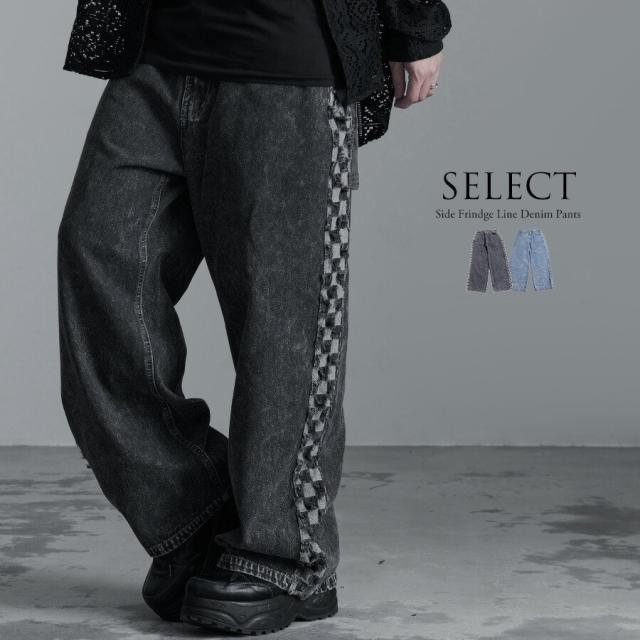 デニムパンツ メンズ ブランド おしゃれ ワイドパンツ ワイドデニム 大人 カジュアル ケミカル加工 フリンジ ヴィンテージ ビンテージ ヴィジュアル系 ビジュアル系 V系 原宿系 モード系 ストリート 黒 ブラック ブルー 夏 春 秋 冬 M L CavariA キャバリア [CAWI24-29]