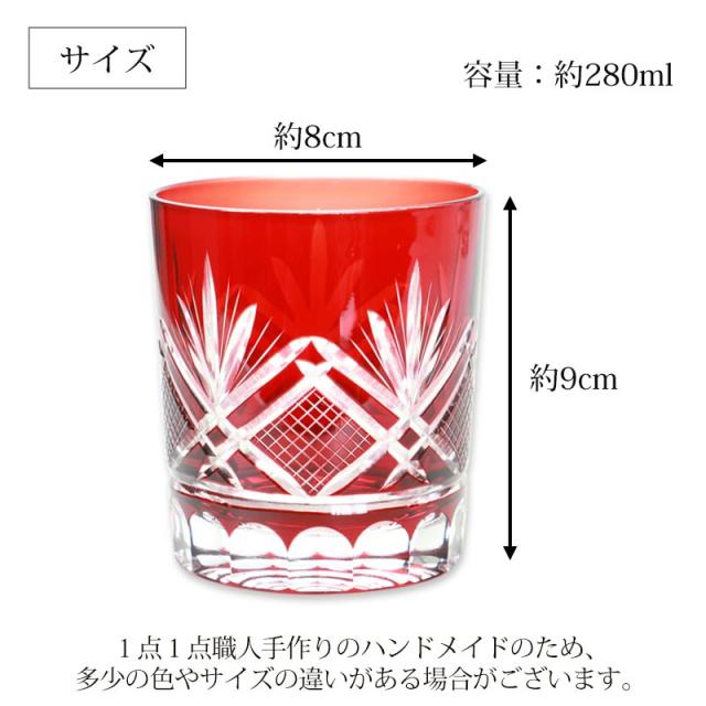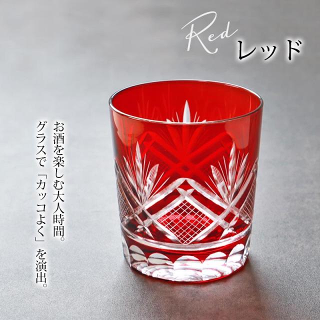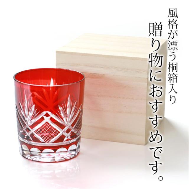 切子 グラス 切子オールド 280ml 桐箱入り 単品 切子グラス オールドグラス おしゃれ 箱入り プレゼント 赤 きりこ 切り子 グラス 日本酒 レッド 母の日 父の日 還暦祝い 退職祝い 食洗機対応 ギフト ロックグラス ウイスキー