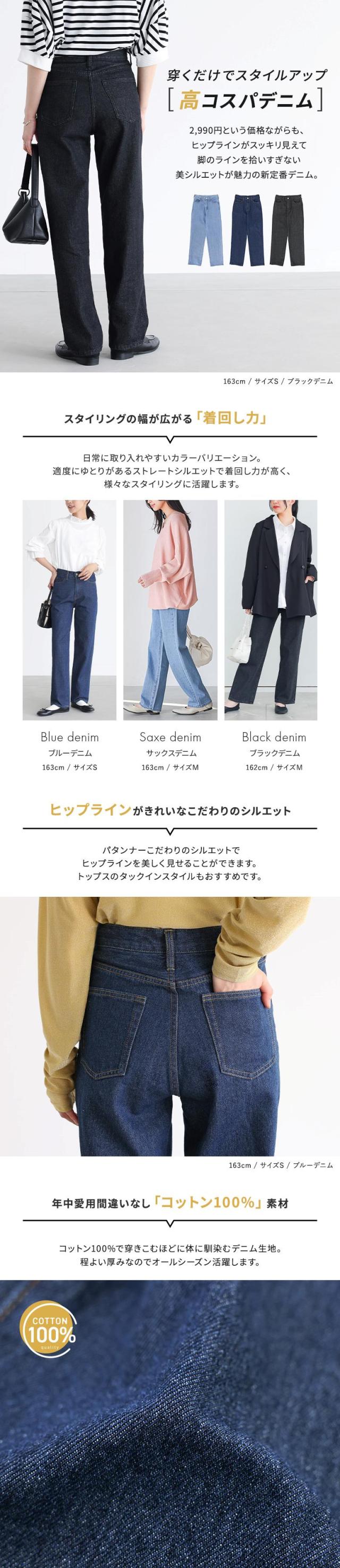 『ストレートデニムパンツ』【メール便不可】【20】デニム パンツ ジーンズ デニムパンツ レディース ボトムス ジーパン ストレート ストレートデニム 美脚 大きいサイズ 小さいサイズ オシャレウォーカー 15bm03j