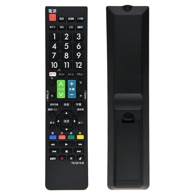 テレビ リモコン TB-E619-B 東芝 レグザ 多機種 互換 簡単操作 シンプル 設定不要 すぐに使える TOSHIBA REGZA 代替 代用 機種 故障 買い替え 交換 液晶 電池別売