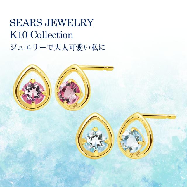 シアーズ ピアス レディース K10 スタッドピアス 天然石 スモーキークオーツ モルガナイト アクアマリン ペリドット ロードライトガーネット アイオライト 誕生日 プレゼント ゴールド ギフト ジュエリー sears クリスマス_wp