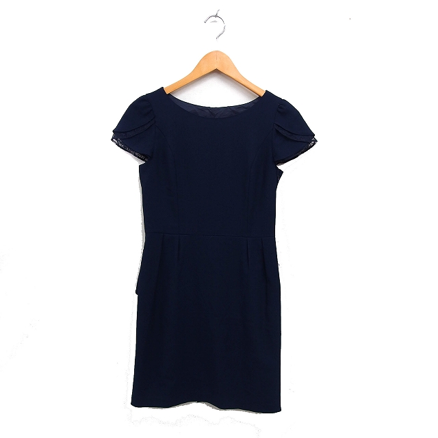 【中古】デビュー ド フィオレ Debut de Fiore ドレス ワンピース タイト ひざ丈 ペタルスリーブ 無地 36 ネイビー 紺