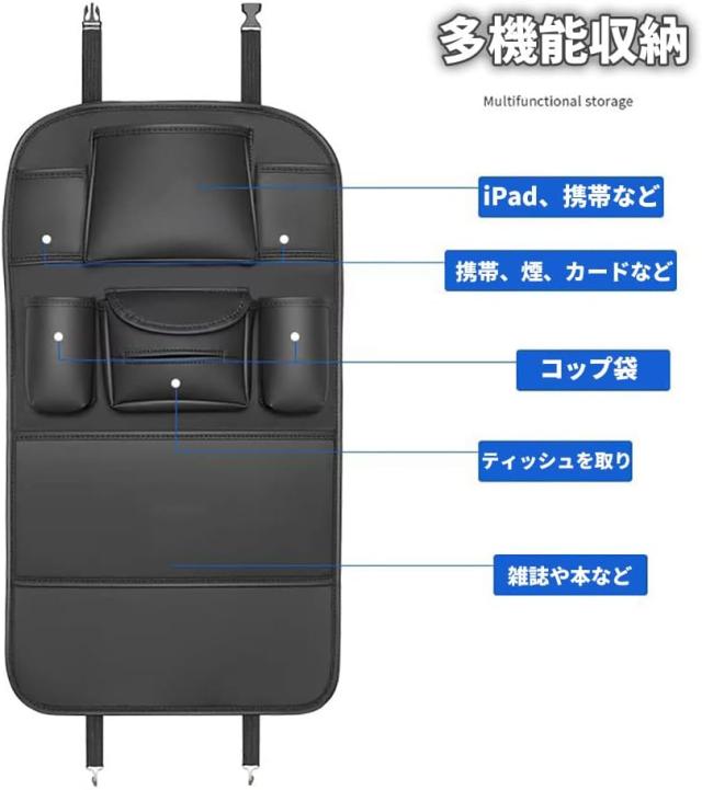 多機能収納ポケット: 様々なアイテムを収納できるポケットが付いており、車内をすっきりと整理整頓できます。