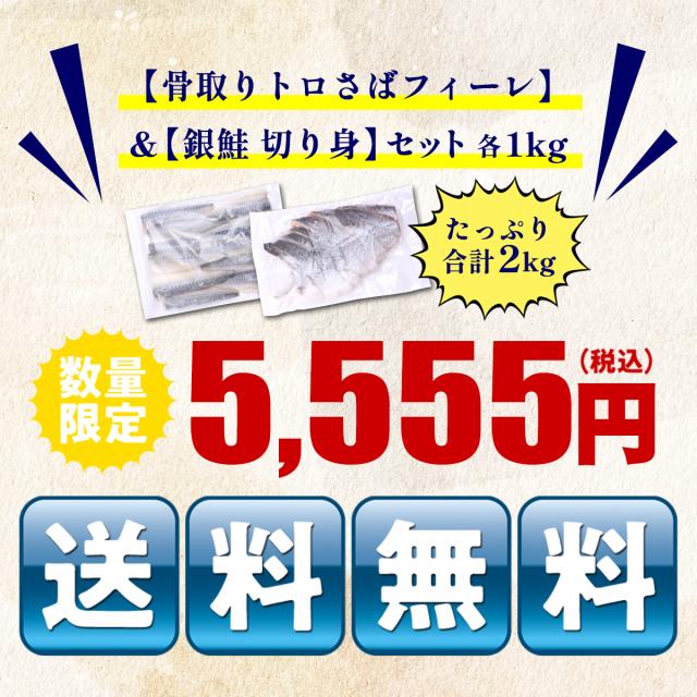 リピーター続出の大人気商品「骨取りトロさばフィーレ」と「銀鮭 切り身」が1kgずつのセットで登場!
