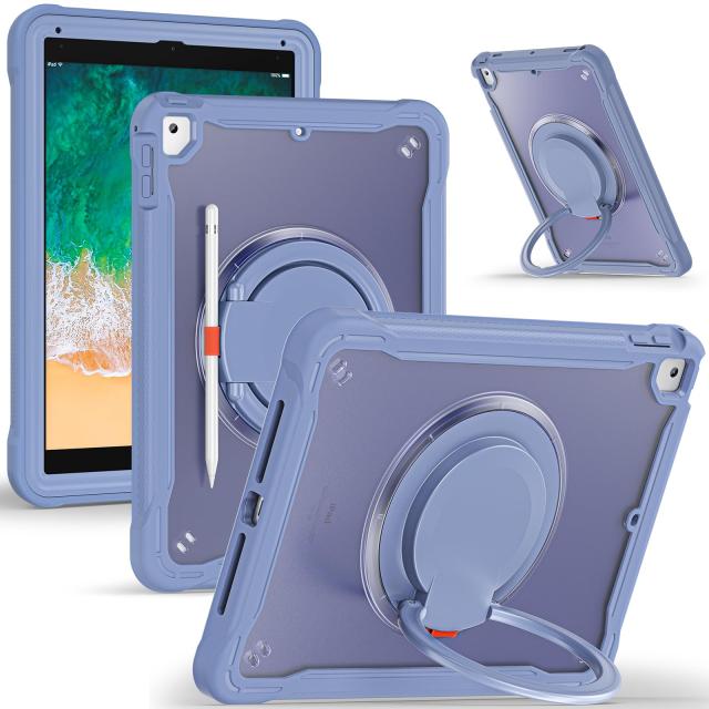 iPadケース 360度リングスタンド ショルダーストラップ付き ペンホルダー付き 半透明 ハード PC背面カバー