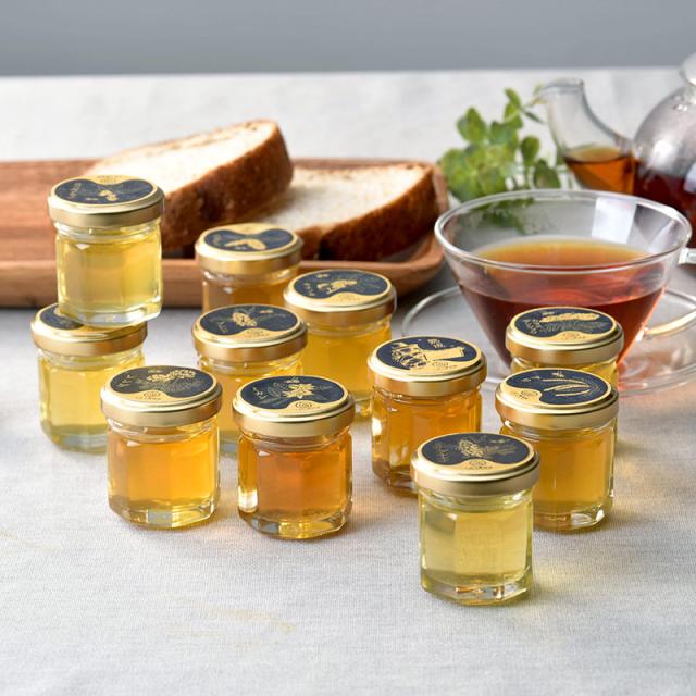 数あるはちみつの中から厳選された10種のはちみつを詰め合わせた、味の違いが楽しめるギフトセット。高級感あふれる贈答箱入りで、幅広いギフトシーンにお選びいただけます。ずっと健康でいてほしい、大切な方への贈り物にもおすすめです。
