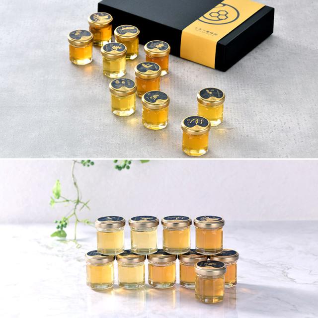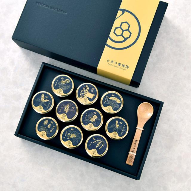 高級感あふれる贈答箱入り。農薬・化学薬剤不使用の天然はちみつ10種を詰め合わせた味の違いが楽しめるギフトセット。