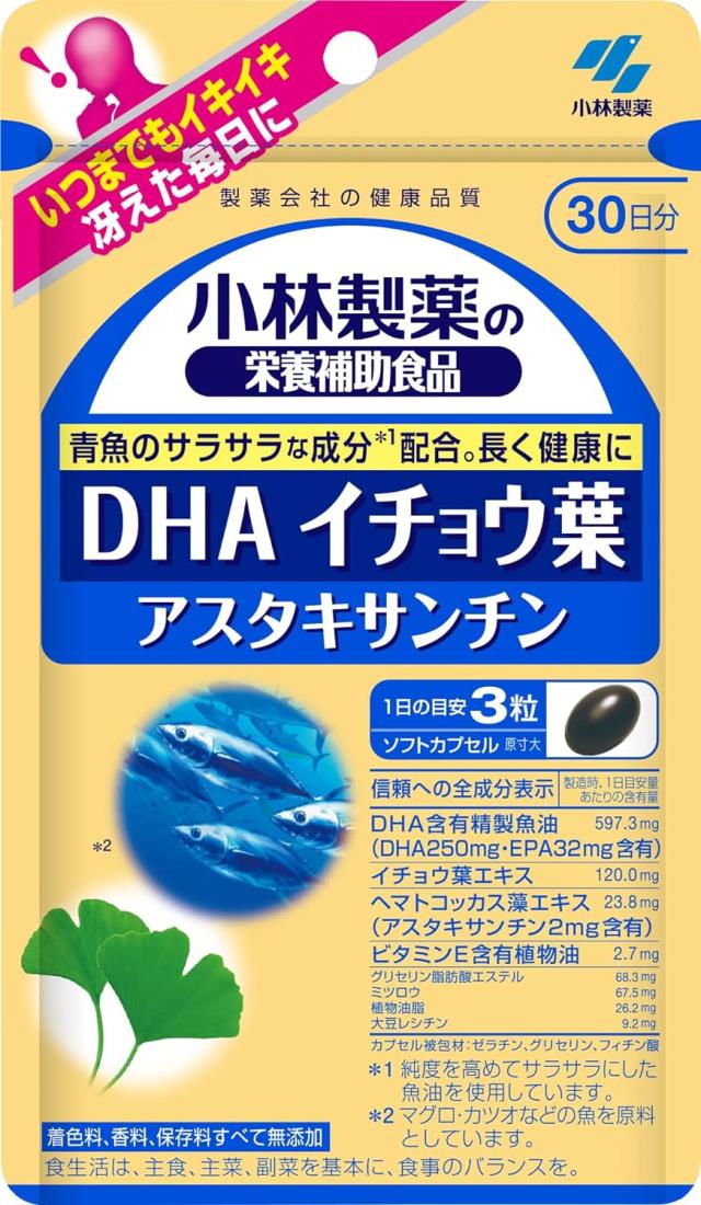 小林製薬の栄養補助食品 DHA イチョウ葉 アスタキサンチン 約30日分 90粒 サプリメント サプリ